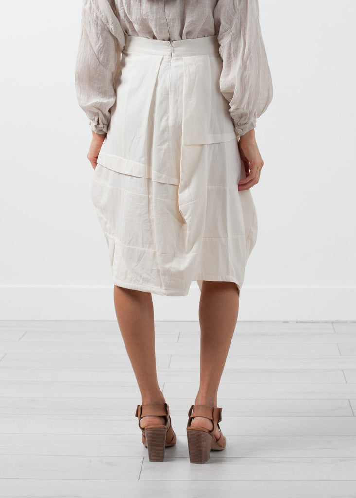 Asymmetry perfected for daywear. Invisible zip closure. Ivan Grundahl. Color Cream. 100% Cotton. Made in Portugal. Ashley is wearing a Size 36.