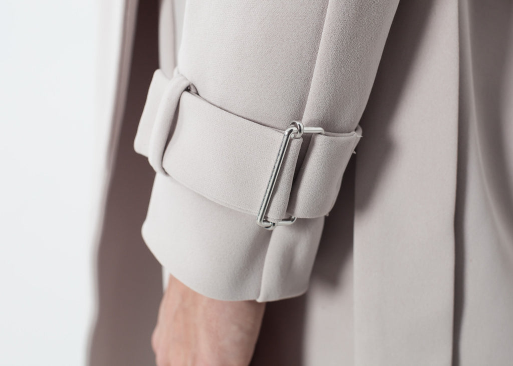 Timeless full-length trench made irresistibly chic. Lovely on all frames and crafted from exquisite materials, its silhouette elongates and complements the form. Wide lapel with fastening collar details, deep side pockets, prominent back yoke with waist belt and cuff ties. By Malene Birger. Color Light Tan. 100% Polyester, 100% Viscose. Ashley is wearing the Size 34.