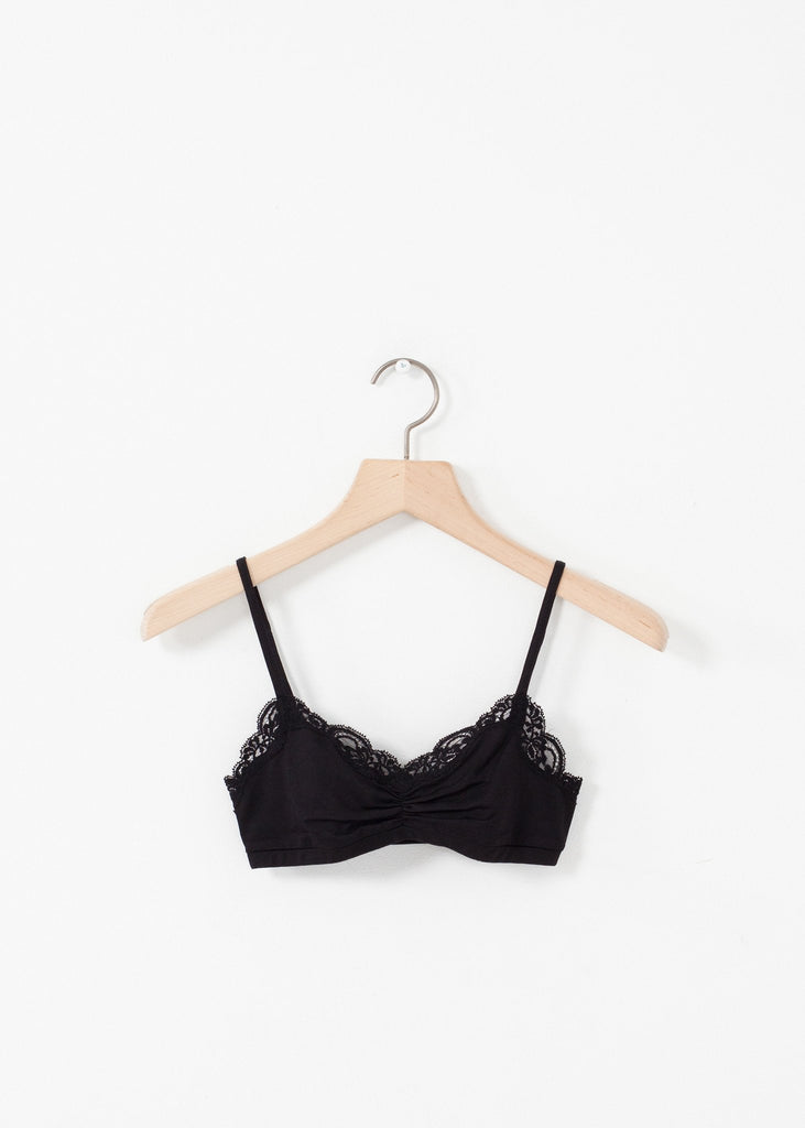 The Ruche Bra from Only Hearts offers a delicate fit for your everyday needs with a fun lace trim. Color Black. 90% Nylon, 10% Lycra. Made in U.S.A.