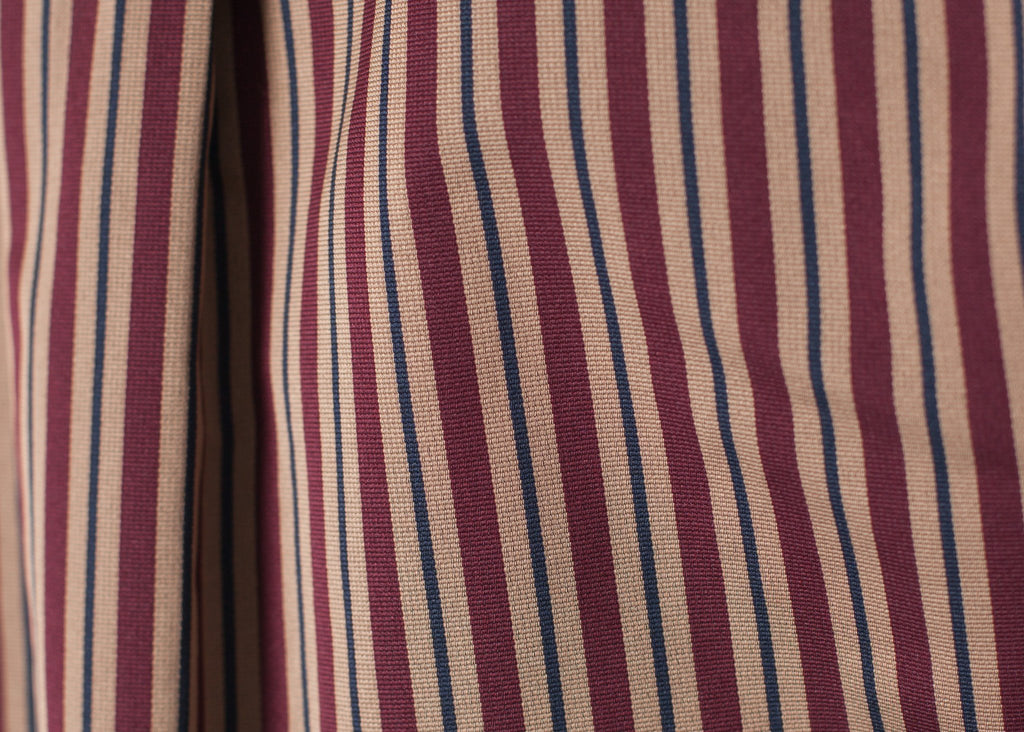 Classically tailored to modern perfection. The Sheen Button-Up by Hache maintains the borrowed shirt look with feminine details. Slightly there slits at cuffs. Silk-like hand. Single front button placket opening. Back yoke. Hache. Color Red/Tan. 100% Polyester. Made in Italy. Lana is wearing a Size 38.