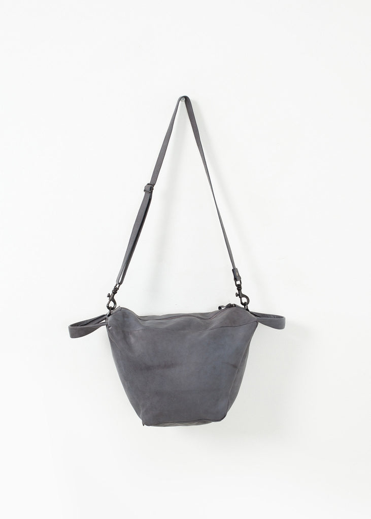 Calf skin leather bag with two handles that can be carried as a tote, worn over the shoulder, or cross-body. Detachable and adjustable shoulder strap, black hardware, and with zip closure. Fully lined in linen with a zip inner pocket. Marsell. Color Lead. 100% Leather, 100% Linen Lining. Made in Italy.