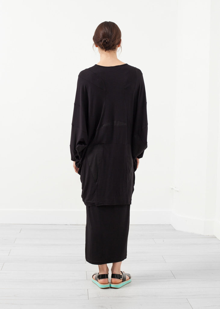 Bridging oversized with polished is a balancing act, the Grundahl's Vibe represents the perfected algorithm. Dolman sleeves. Ivan Grundahl. Color Black. 96% Viscose, 4% Elastane, Trimming 100% Cotton. Made in the EU. Lana is wearing a Small.